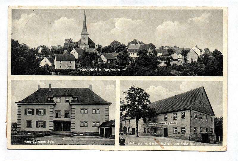 Ak Eckersdorf b. Bayreuth Hans-Schemm-Schule Metzgerei Gastwirtschaft Fritz Bauer