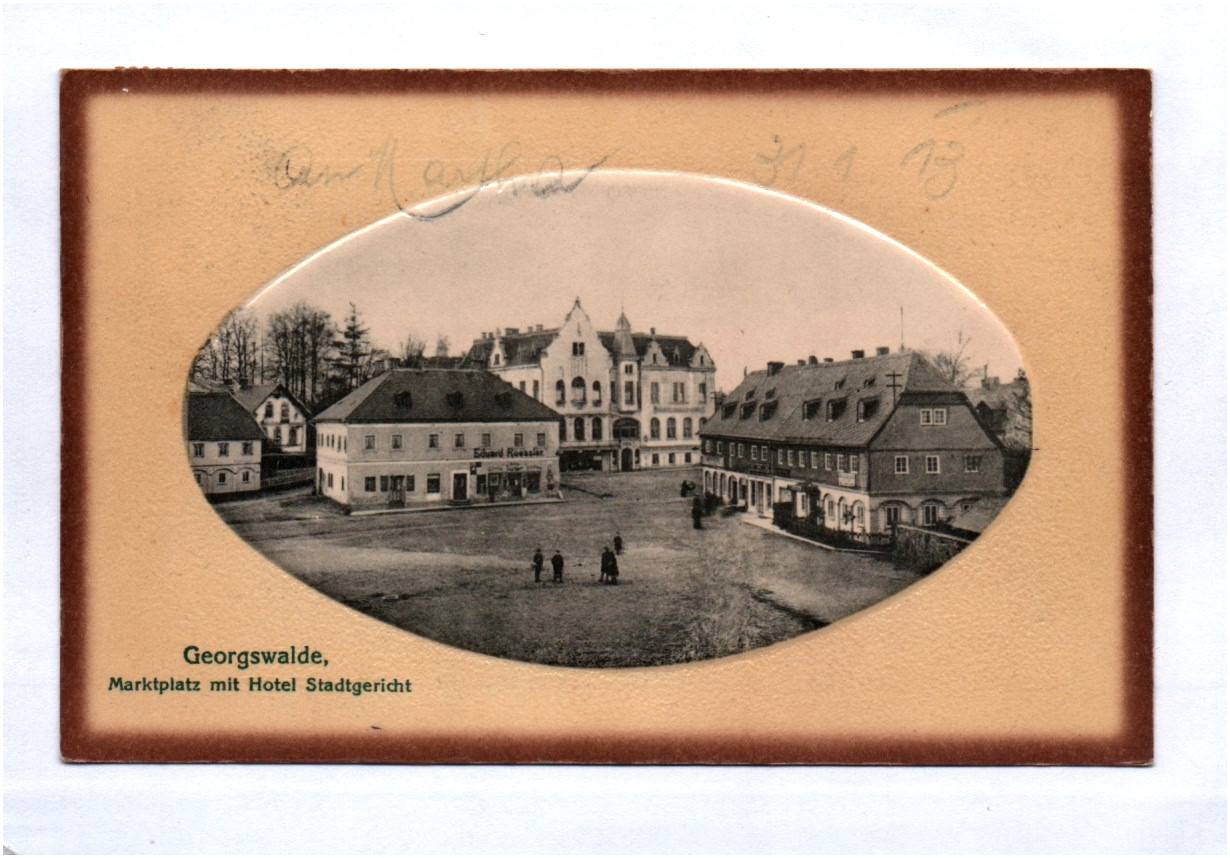 Ak Georgswalde Böhmen Marktplatz mit Hotel Stadtgericht geprägt 1913