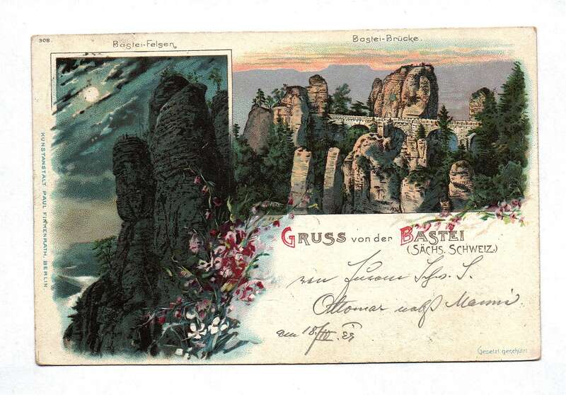 Ak Gruß von der Bastei Sächsische Schweiz Bastei-Felsen Bastei-Brücke 1899