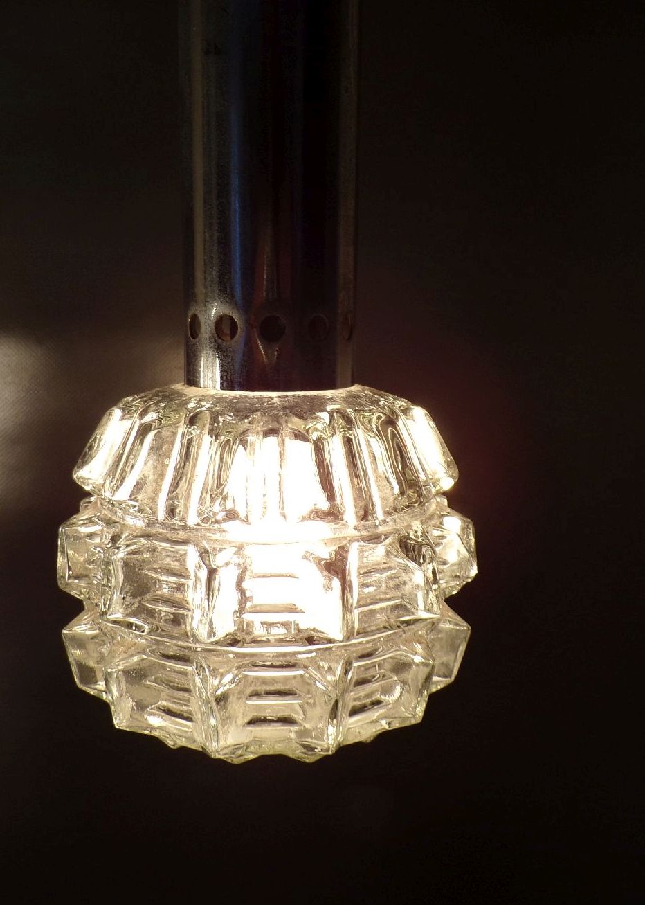Originale, alte 3er Kaskadenlampe. Größe komplett: max. 46 cm, Durchmesser Lampenschirm: 8 cm, Größe je Lampenelement: 17 cm. Mit je einer E14 Lampenfassung. Die Elektrik muss erneuert werden. Die Längen der einzelnen Lampen sind verstellbar. Hergestellt vom VEB Narva Leuchtenbau Lengefeld. Erhaltung: Kunststoffhalterungen porös, Deckenhalterung fehlt, Metall mit Patina, Gebrauchsspuren vorhanden, alles weitere siehe bitte Fotos. Lieferung erfolgt ohne Beleuchtungsmittel.Es wird keine Mehrwertsteuer ausgewiesen, da wir der Differenzbesteuerung nach § 25a UStG unterliegen.