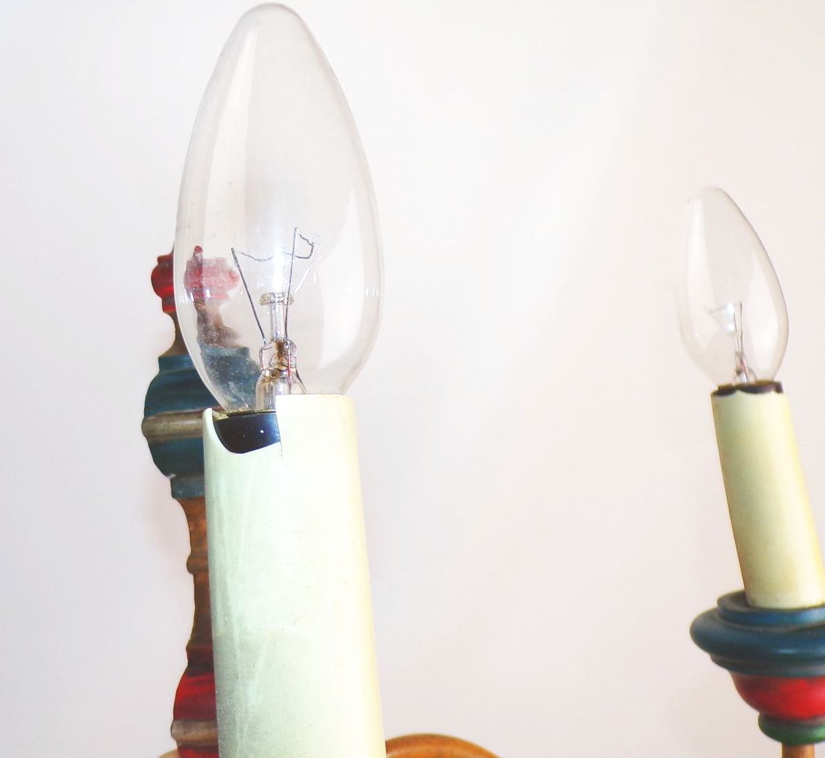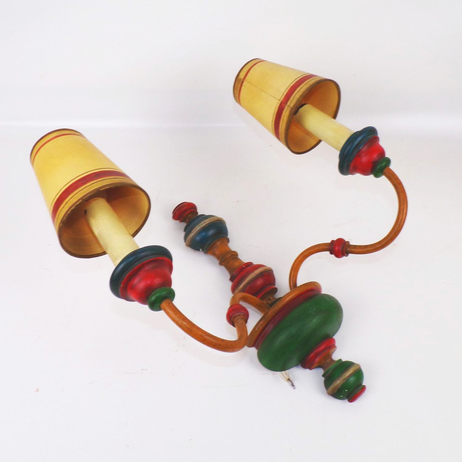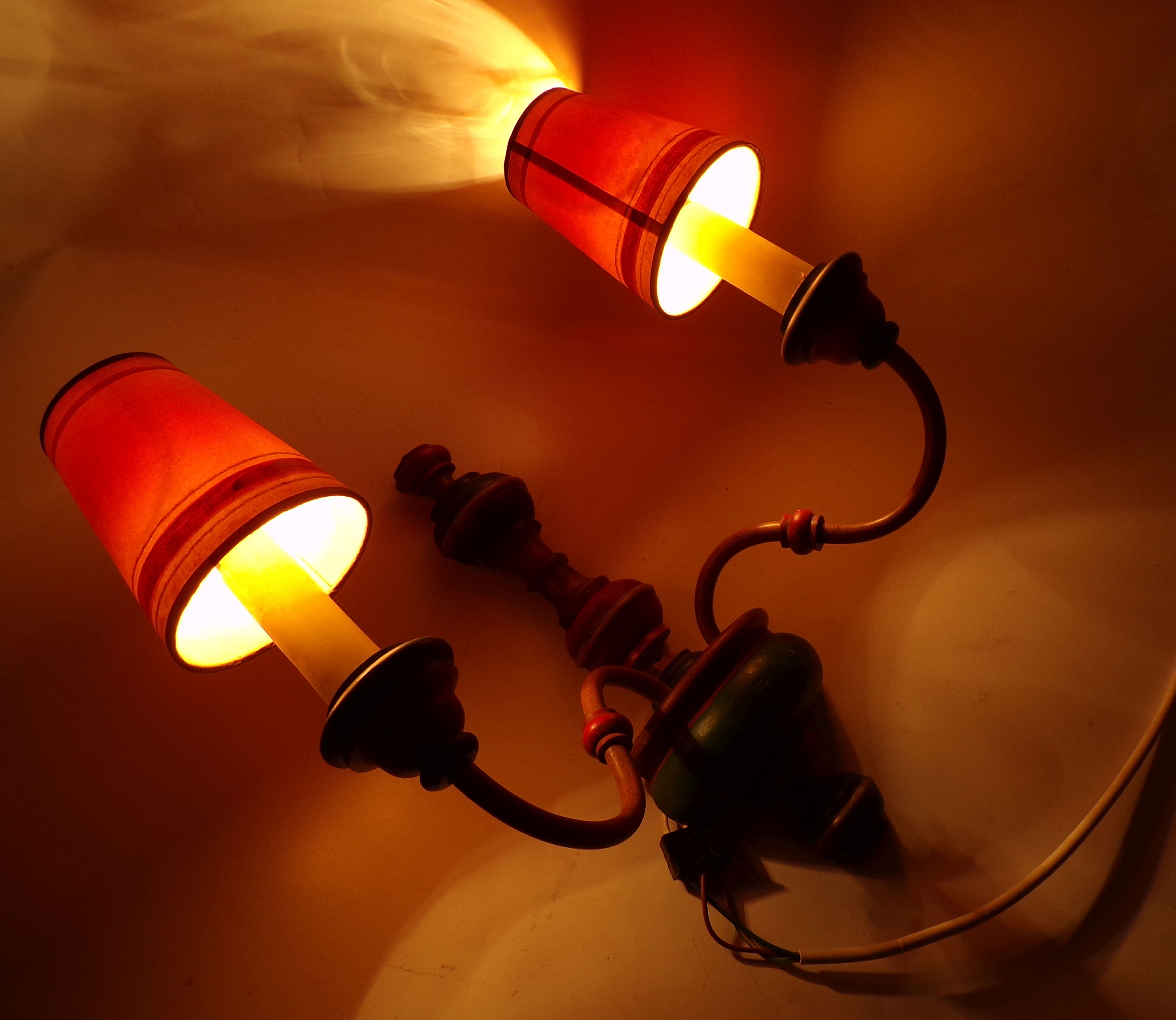 Alte Wandleuchte Holz E14 Bunt 2 armig Wandlampe Beleuchtung Vintage