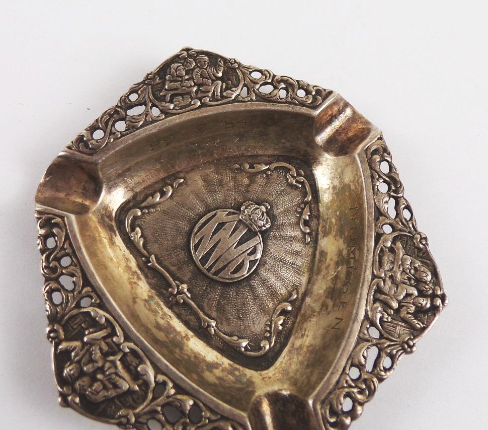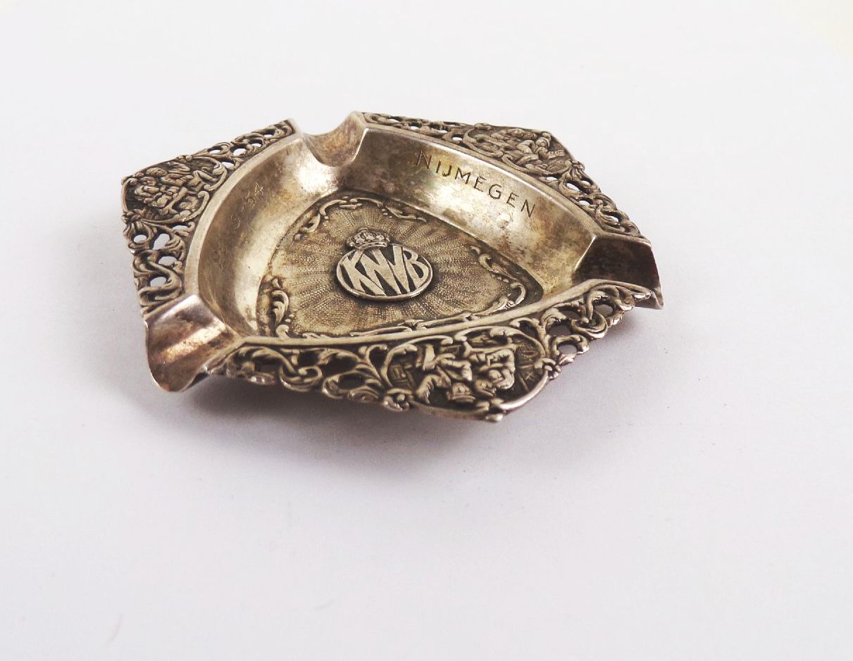 Originaler, alter Aschenbecher, 90er Silberauflage. Nijmegen 29-9-54 KNVB . Maße: 7,5 x 8 cm x 1 cm. Erhaltung: gebrauchter, guter Zustand, alles weitere siehe bitte Fotos.