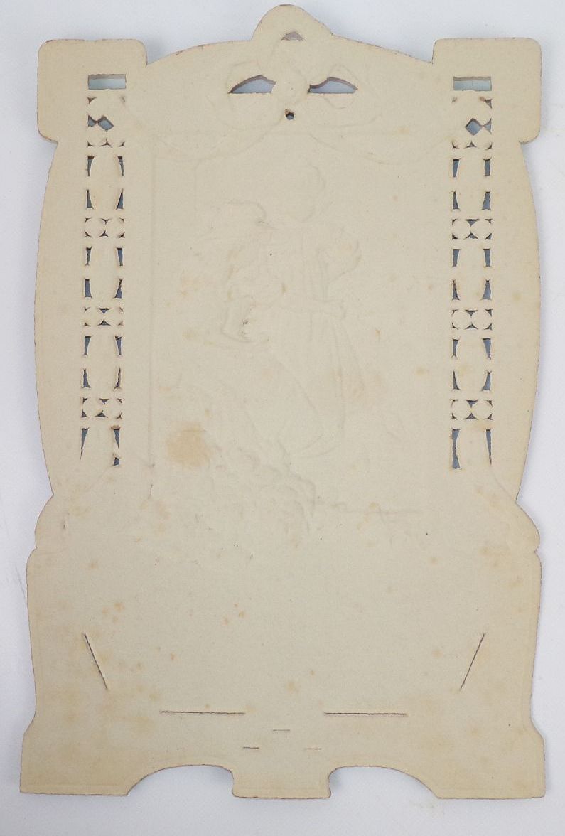 Jeweils 1 originaler, alter Wandbehälter aus stark geprägter Pappe, ca. um 1900 - 1910, Jugendstil. Front wird einfach eingesteckt. Maße: 26 cm x 40 cm. Erhaltung: dem Alter entsprechend sehr gut, da unbenutzt, aber über 100 Jahre alt. Alles weitere siehe bitte Fotos. Es wird keine Mehrwertsteuer ausgewiesen, da wir der Differenzbesteuerung nach § 25a UStG unterliegen.