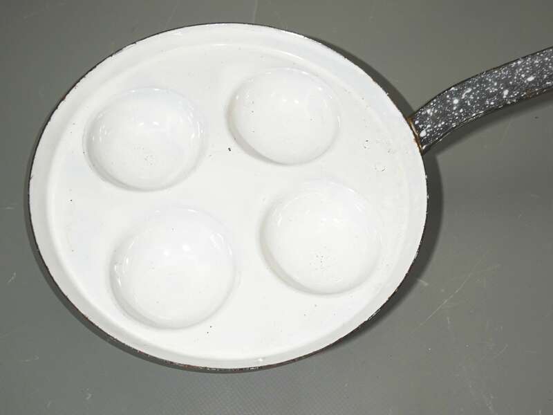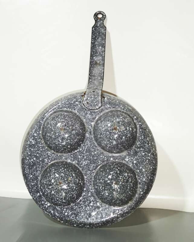 Alter Emaille Eierpfanne Setzei Pfanne Grau Weiss schöner Zustand