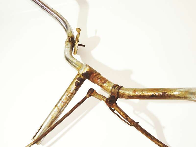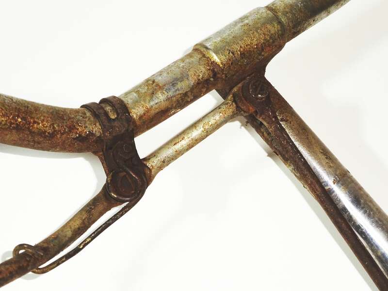 Zustand: viel Patina vorhanden, Klingel & Bremse unvollständig, Chrom blättert ab, daher eher als Ersatzteilspender, alles weitere siehe bitte Fotos.