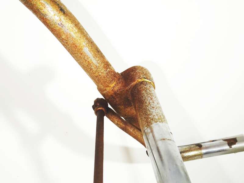 Zustand: viel Patina vorhanden, Bremse unvollständig, Chrom blättert weiterhin ab, daher eher als Ersatzteilspender, alles weitere siehe bitte Fotos.