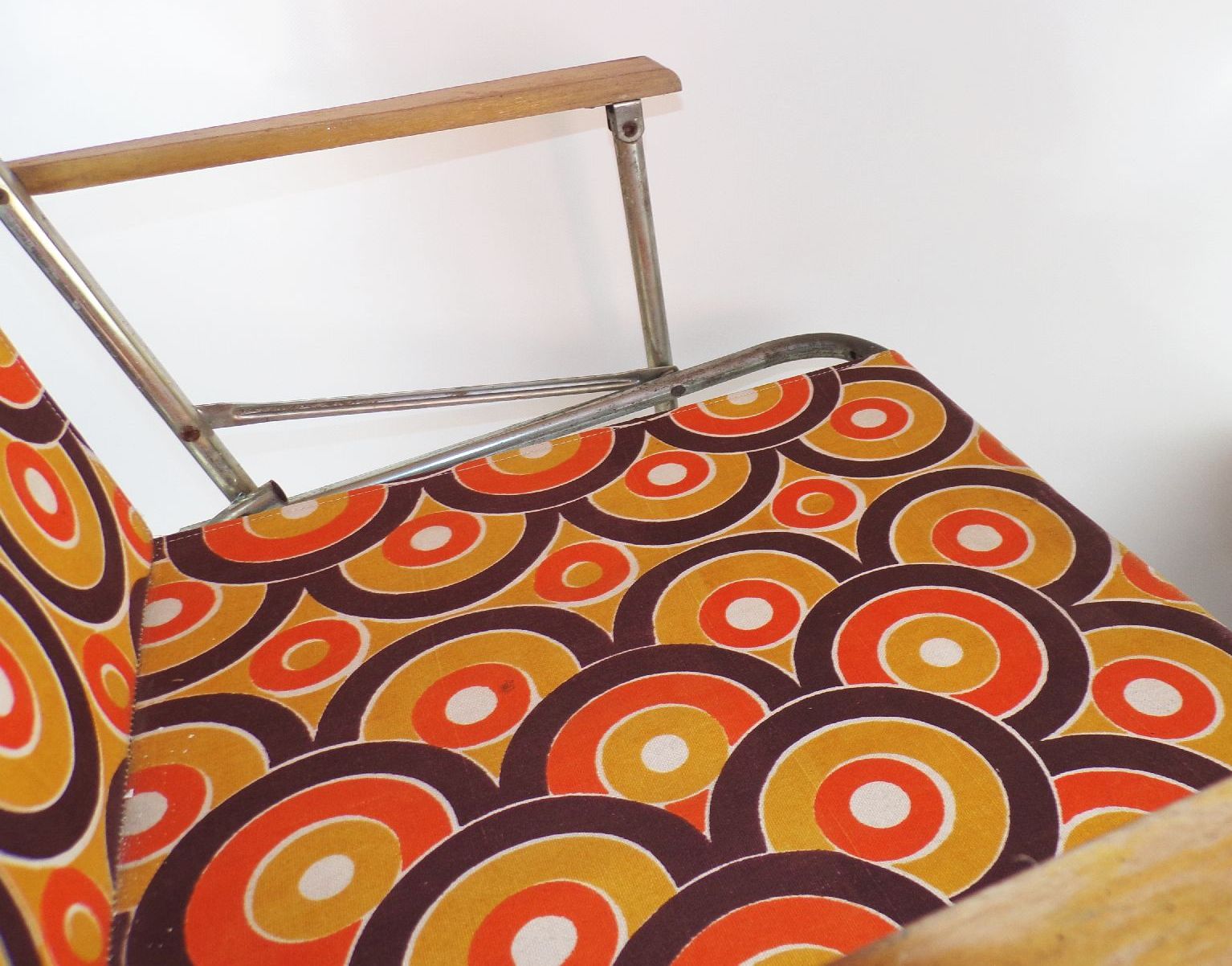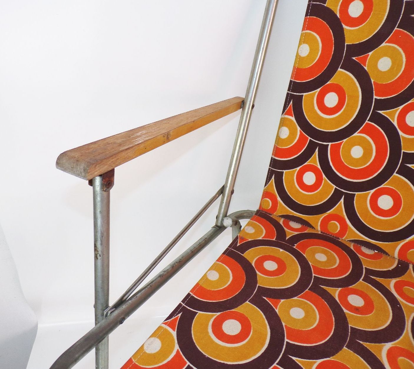 Originaler, alter Campingstuhl aus DDR-Zeiten. Die Stuhl Maße: 50 cm x 50 cm x 82 cm ( b x t x h). Die Sitzhöhe beträgt 43 cm. Erhaltung: Stoff farblich leicht verblast, Gestell und Holzlehnen recht viel Farbverlust, ansonsten gut, alles weitere siehe bitte Fotos.