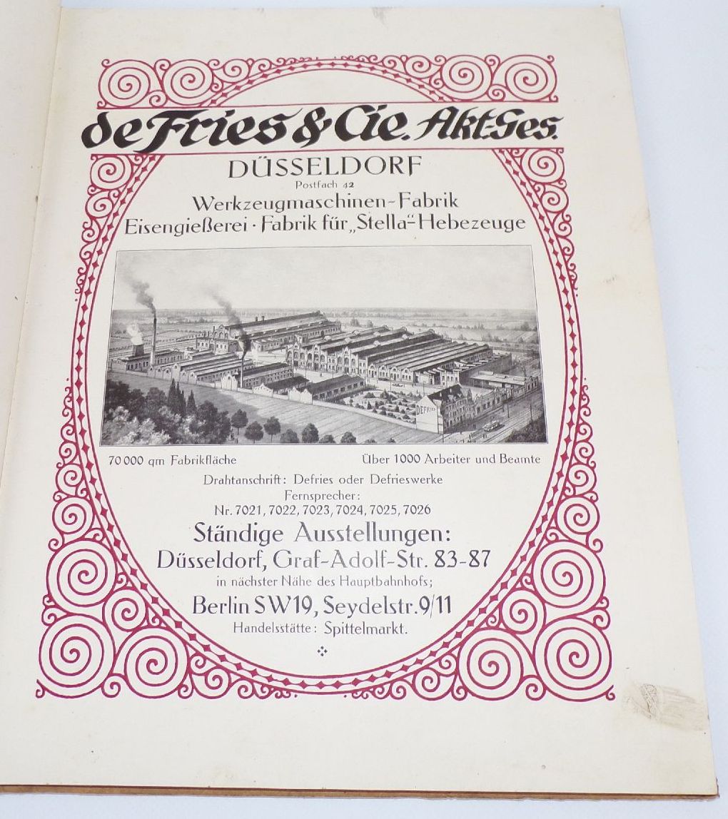 Alter Katalog de Fries u Cie AG Düsseldorf Werkzeugmaschinen Fabrik Eisengießerei