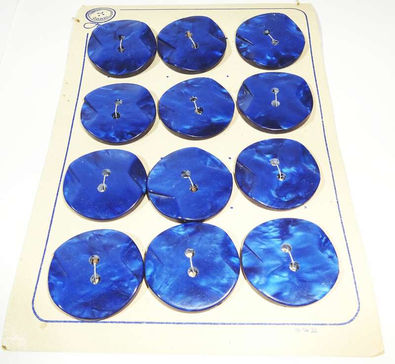 Alter Knopf 12 Stück Platte Knöpfe Art Deco Look Retro Vintage D 35 mm Unbenutzt Blau