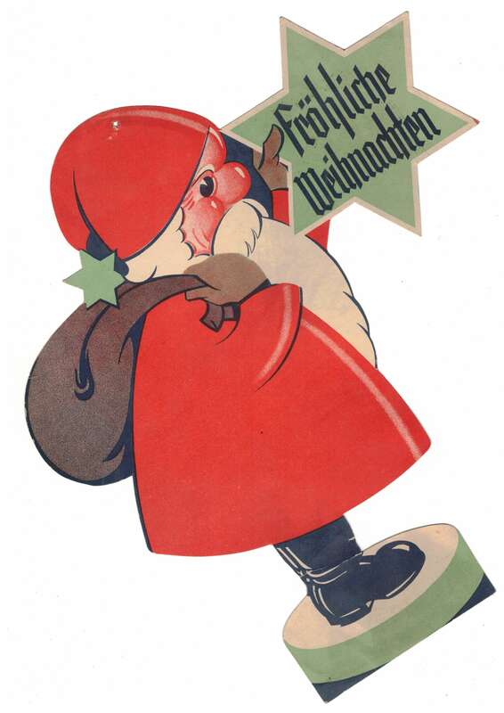 Originaler, alter Papier Weihnachtsmann für das Schaufenster / Fensterschmuck.