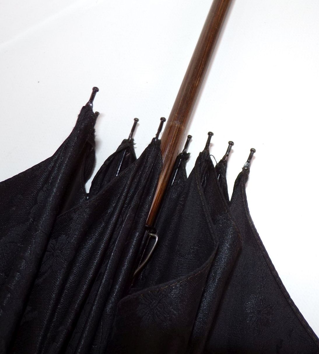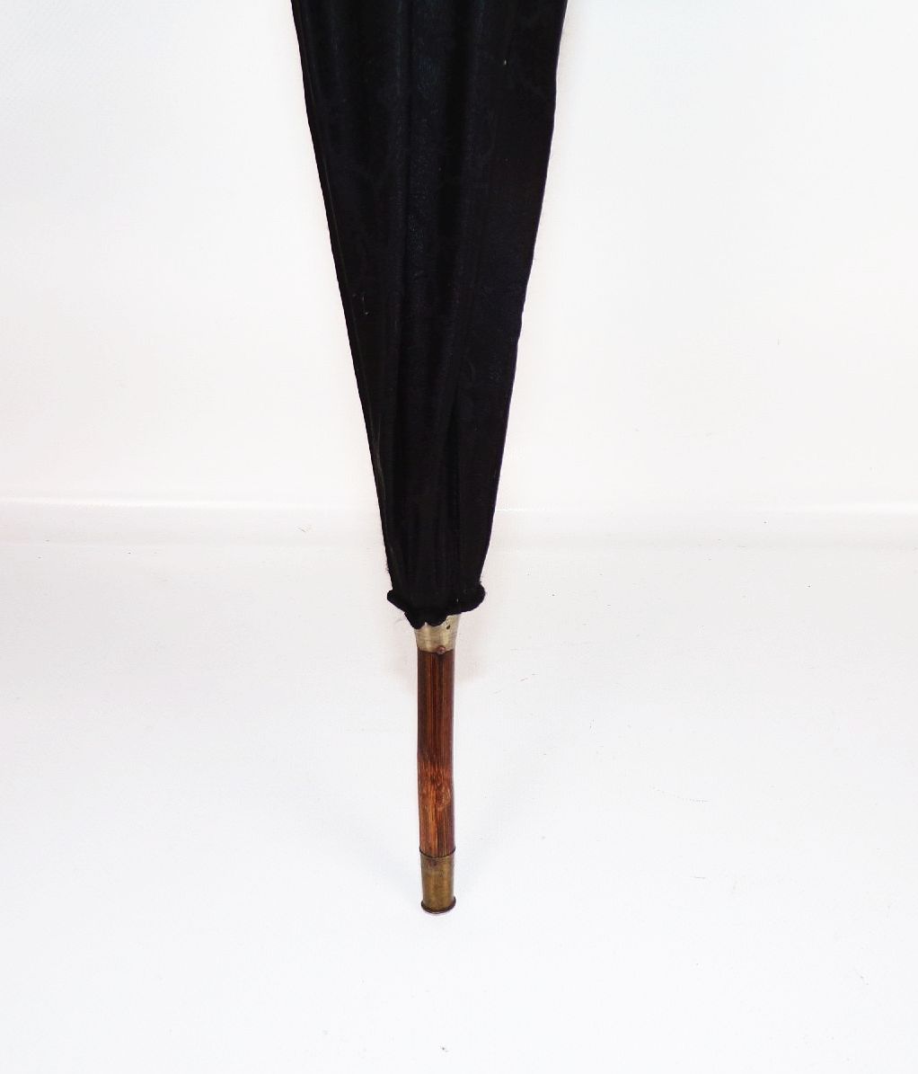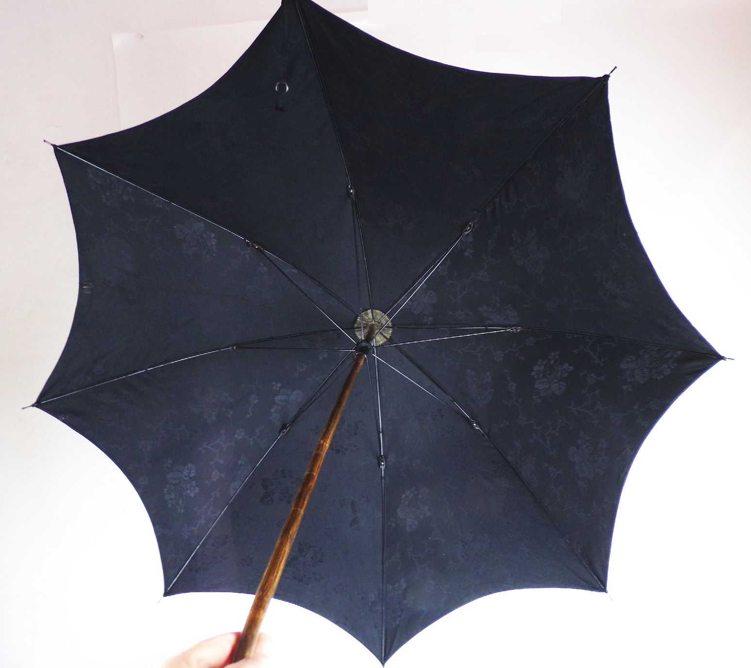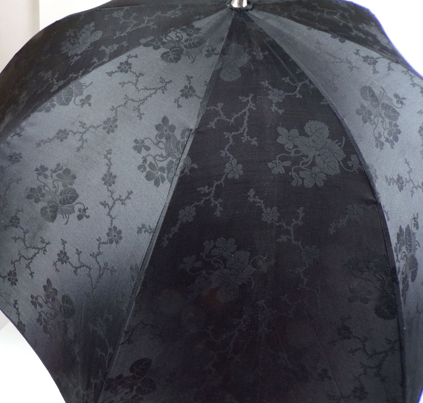 Alter Schirm Schwarz Blumen Floral Muster Flanierschirm um 1900 Mode Gothic