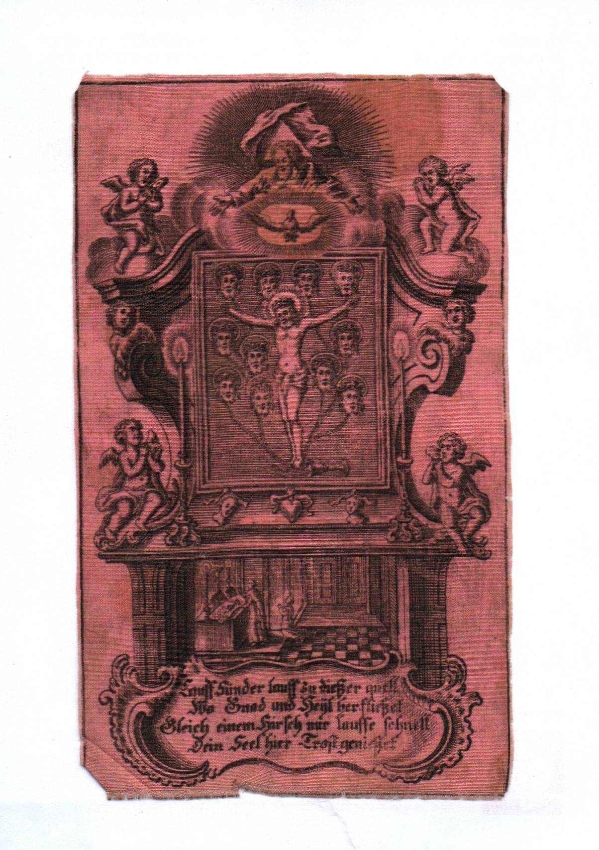 Altes Heiligenbild Jesus Textil Andachtsbild Köpfe um 1880