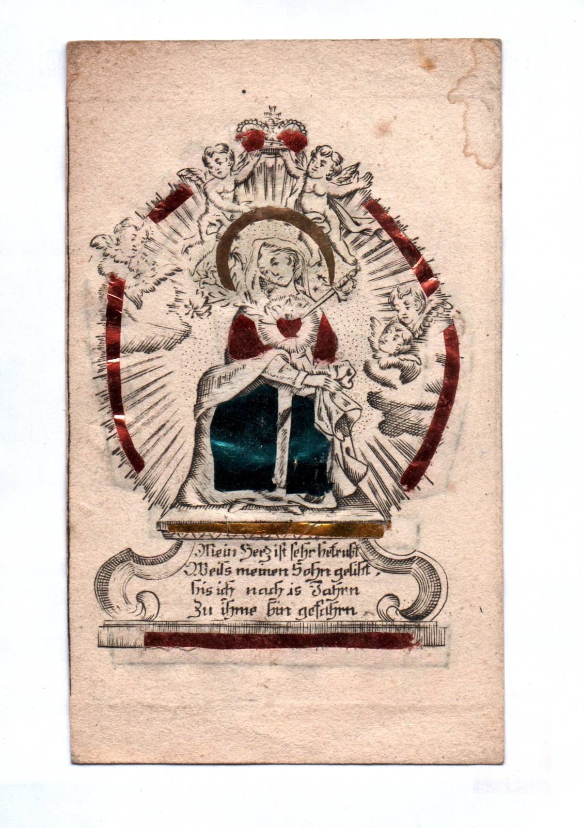 Altes Heiligenbild mit Einlage um 1800 Mutter Gottes Andachtsbild
