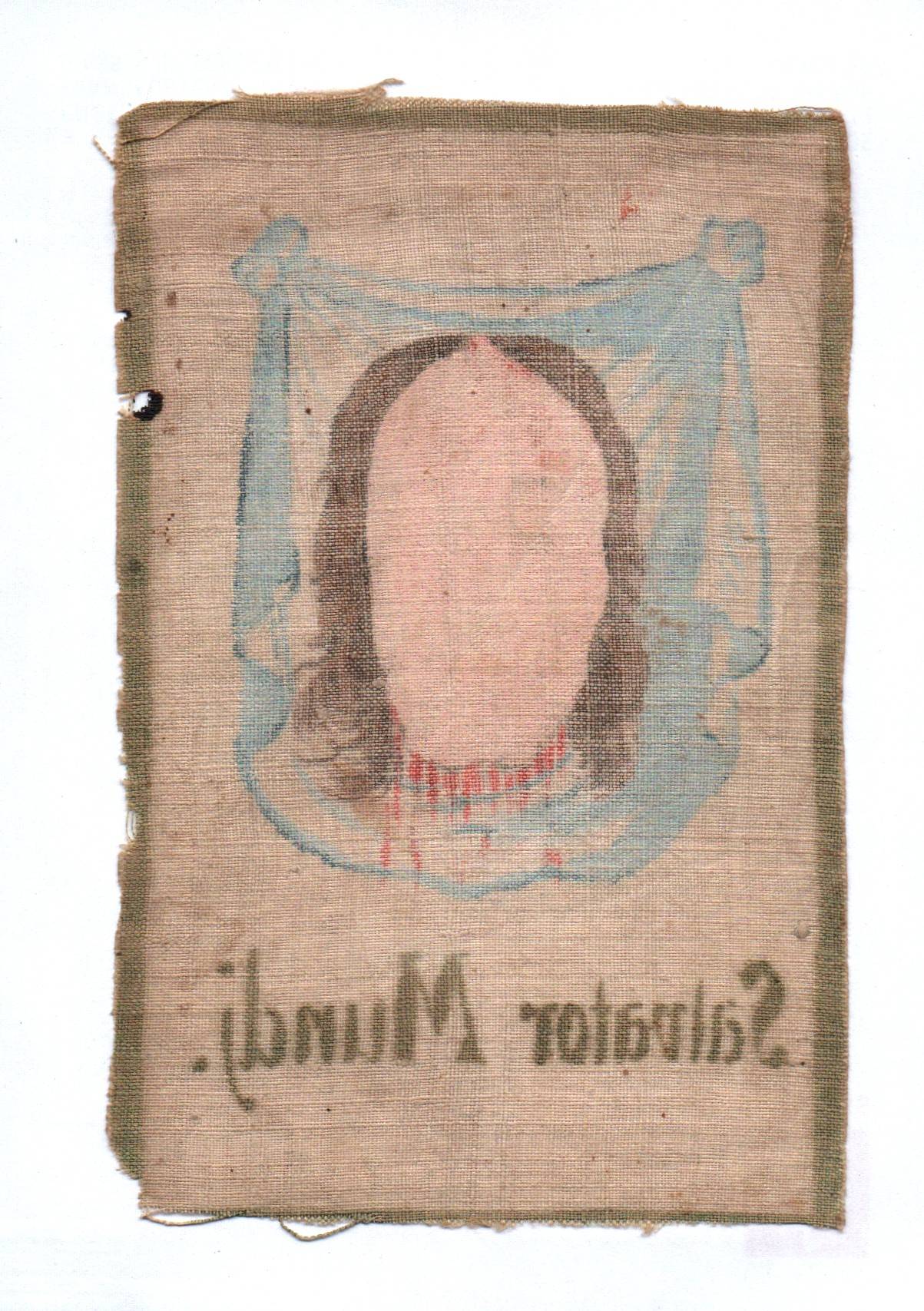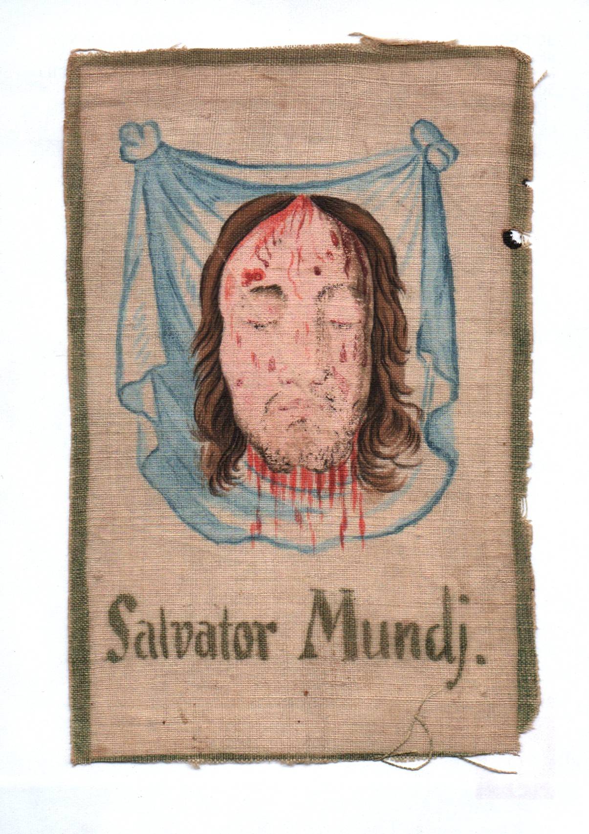 Altes Heiligenbild Salvator Mundi Jesus Textil Andachtsbild handgemalt