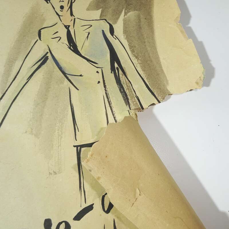 Erhaltung: Papier altersbedingt brüchig, an den Rändern rundum mit Knicken, kleinen Ein - und Abrissen versehen, eine Zeichnung etwas stärker eingerissen, alles weitere siehe bitte Fotos.