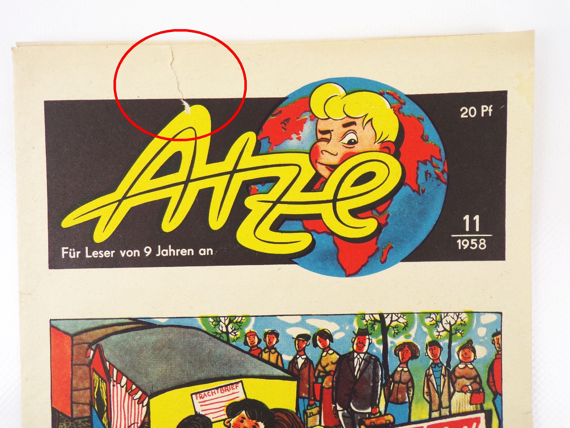 Originale Atze, aus der ehemaligen DDR. Nr. 11 / 1958. Fahrt frei. Erhaltung: Titel mit Einriss, minimal unsauber, ansonsten gut, alles weitere siehe bitte Fotos. Es wird keine Mehrwertsteuer ausgewiesen, da wir der Differenzbesteuerung nach § 25a UStG unterliegen.