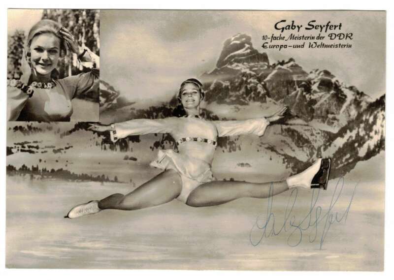 Autogrammkarte Gaby Seyfert Eiskunstlauf DDR Meisterin Unterschrift
