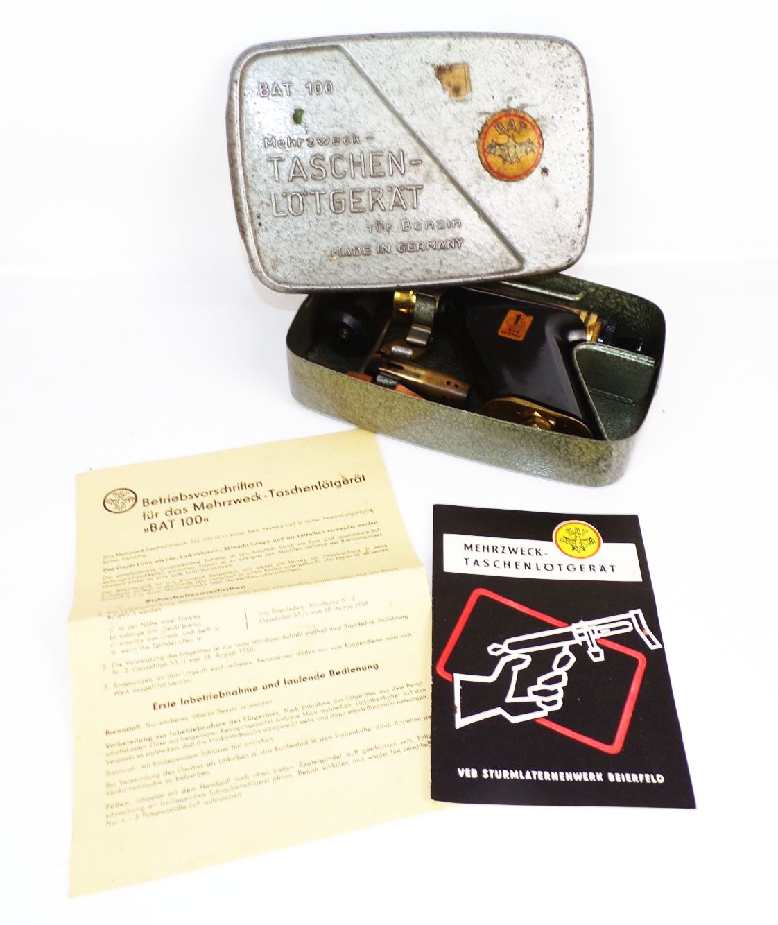 Bat 100 Mehrzweck Taschen Lötgerät für Benzin DDR Metallbox