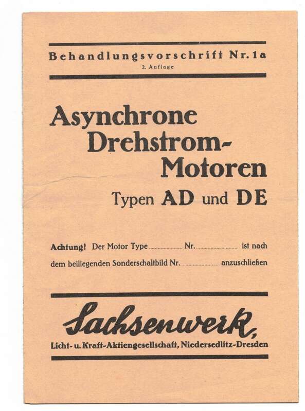 Behandlungsvorschrift Asynchrone Drehstrom Motoren Sachsenwerk Niedersedlitz