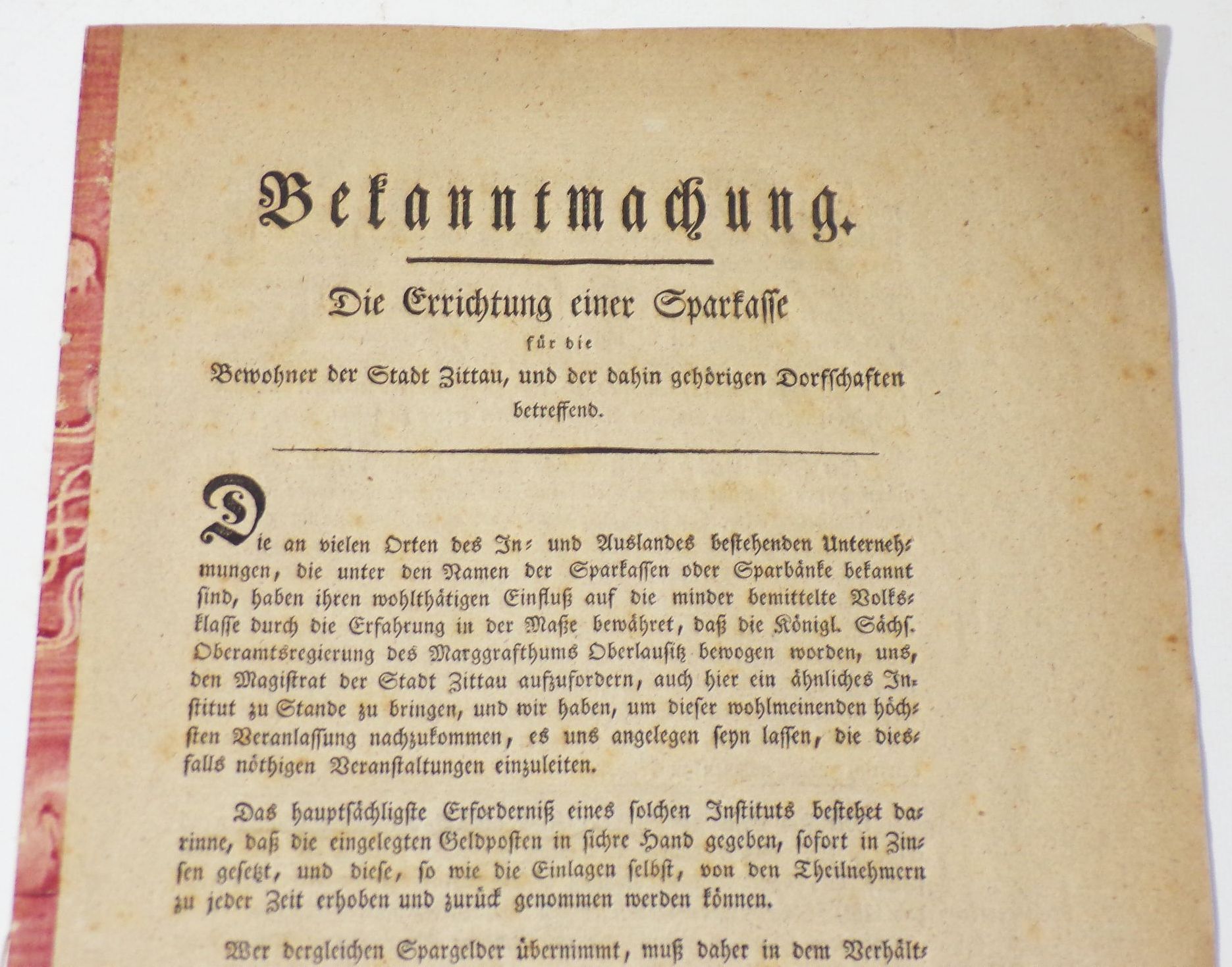 Bekanntmachung Errichtung einer Sparkasse Zittau 1825