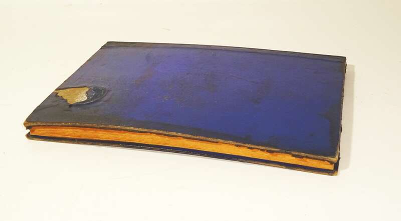 Erhaltung: Buchblock gewölbt, Seiten durchgehend gebräunt und leicht wellig, hinterer Buchdeckel mit aufgeschabten Papier, insgesamt etwas fleckig, alles weitere siehe bitte Fotos.