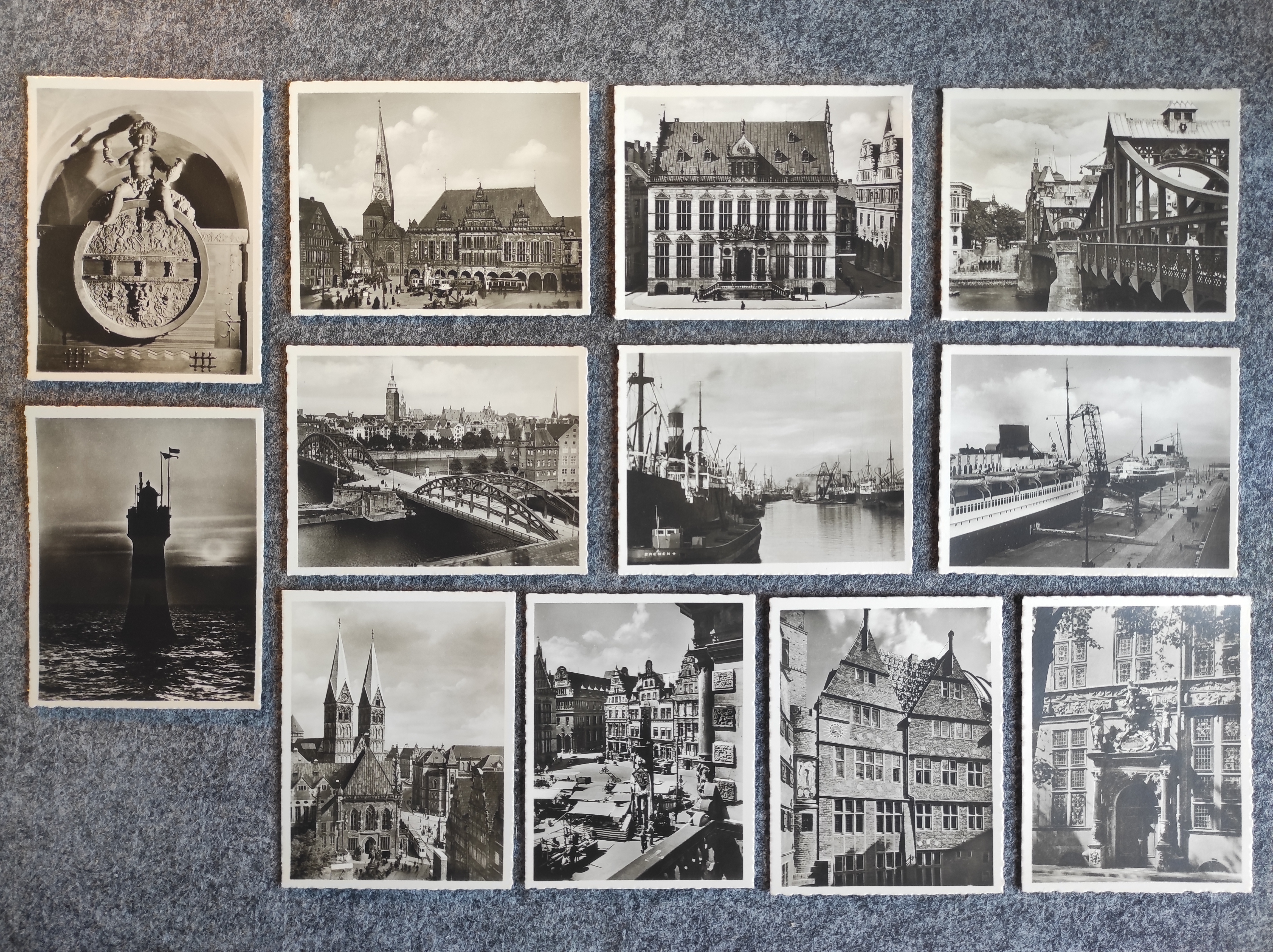 Originale Bildermappe "Das schöne Bremen". Mappe: 9,2 x 7,4 cm, Inhalt: 12 Bilder. Erhaltung: Verpackung hat altersgerechte Gebrauchsspuren und wurde vorn sowie hinten beschriftet, alles weitere siehe bitte Fotos.
