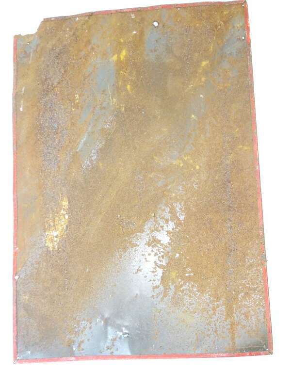 Erhaltung: eine Ecke fehlt, wellig, rostig, Kratzer und Farbverluste vorhanden, alles weitere siehe bitte Fotos.