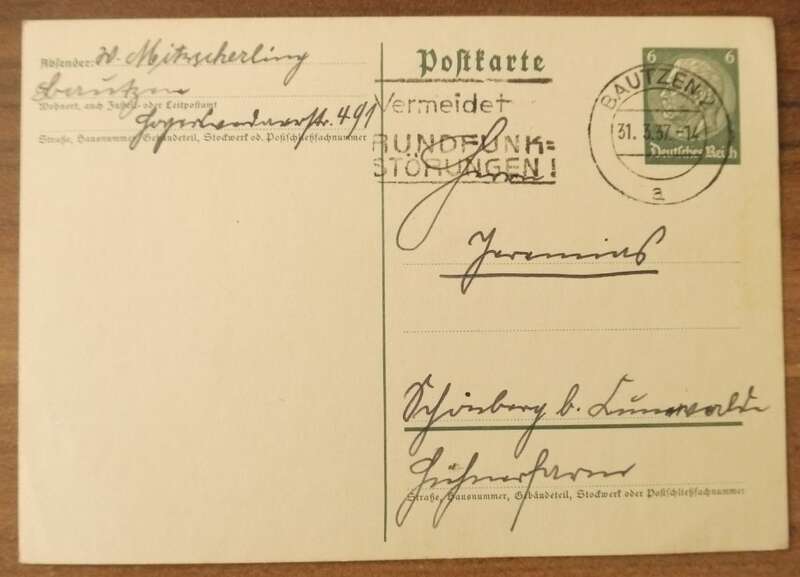 Brief Bautzen Postkarte DR 1937 Vermeidet Rundfunkstörungen