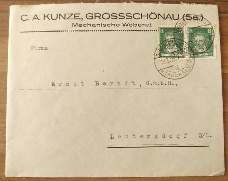 Brief C A Kunze Großschönau Sachsen Mechanische Weberei DR 1928