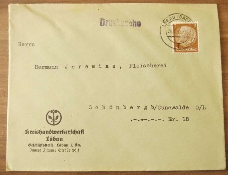 Brief Drucksache Hermann Jeremias Fleischerei Schönberg Cunewalde DR 1939 Sachsen