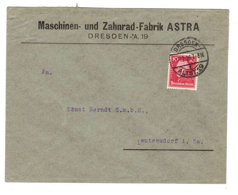 Brief Maschinen und Zahnrad Fabrik ASTRA Dresden A19 1926