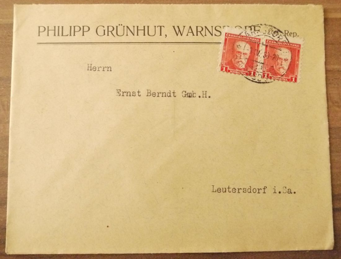Brief Philipp Grünhut Warnsdorf 1930 Brief Böhmen