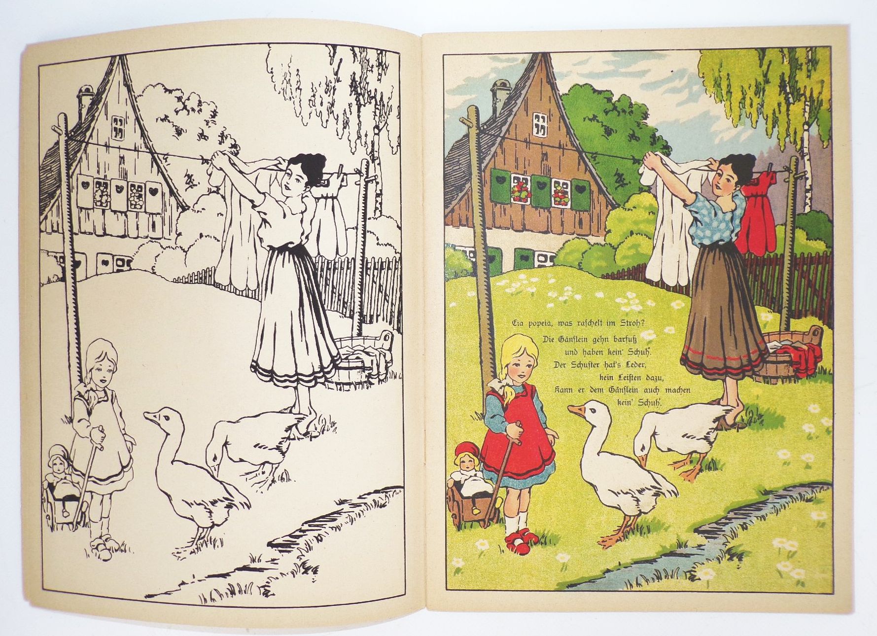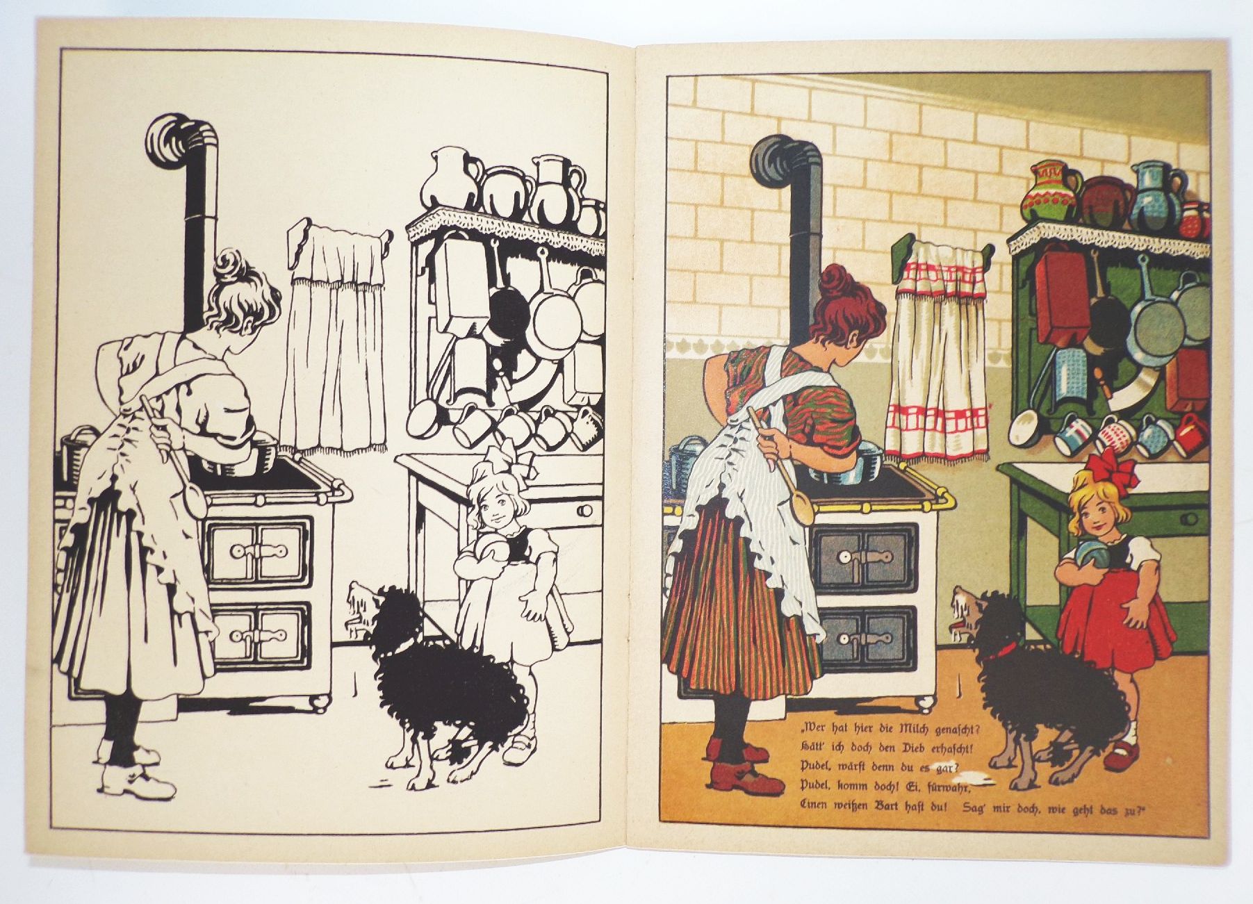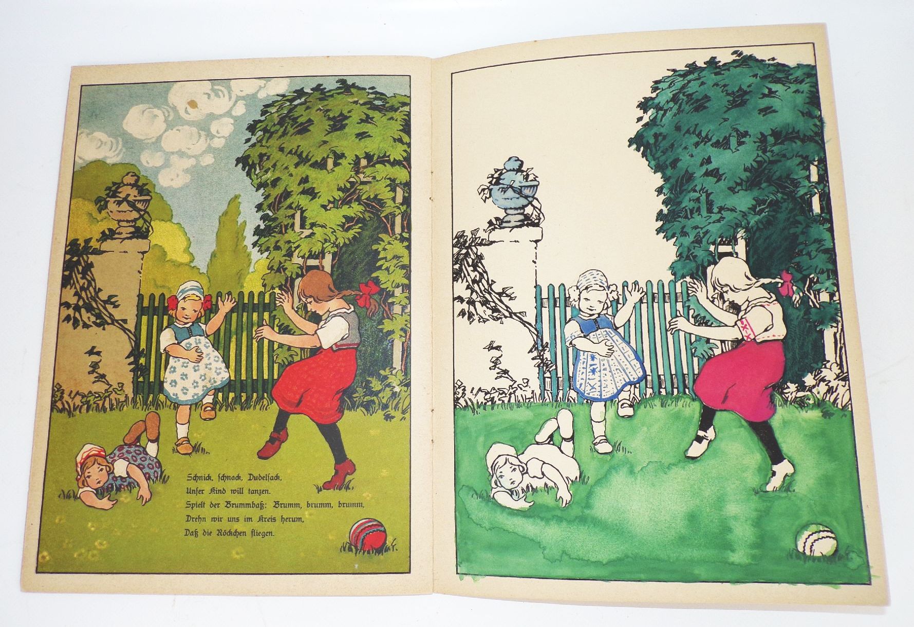 Originales Malbuch, ca. um 1910. Mit vier Doppelbildern, eines ist ausgemalt. Format A 4. Erhaltung: gebrauchter, guter Zustand, alles weitere siehe bitte Fotos. Es wird keine Mehrwertsteuer ausgewiesen, da wir der Differenzbesteuerung nach § 25a UStG unterliegen. Interne Lagernummer H4