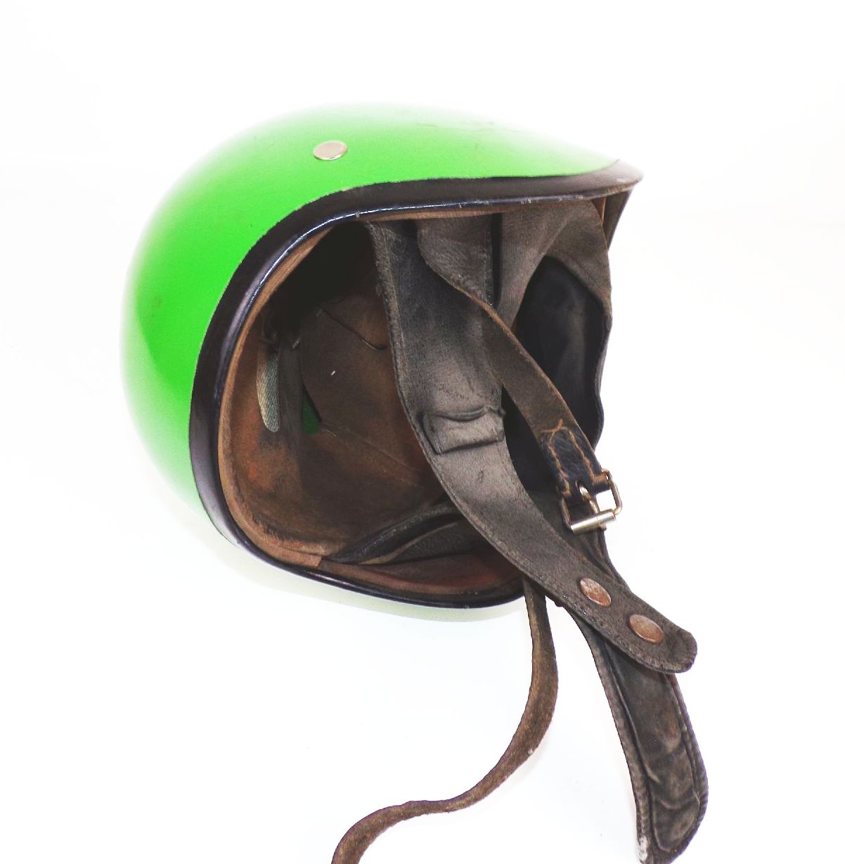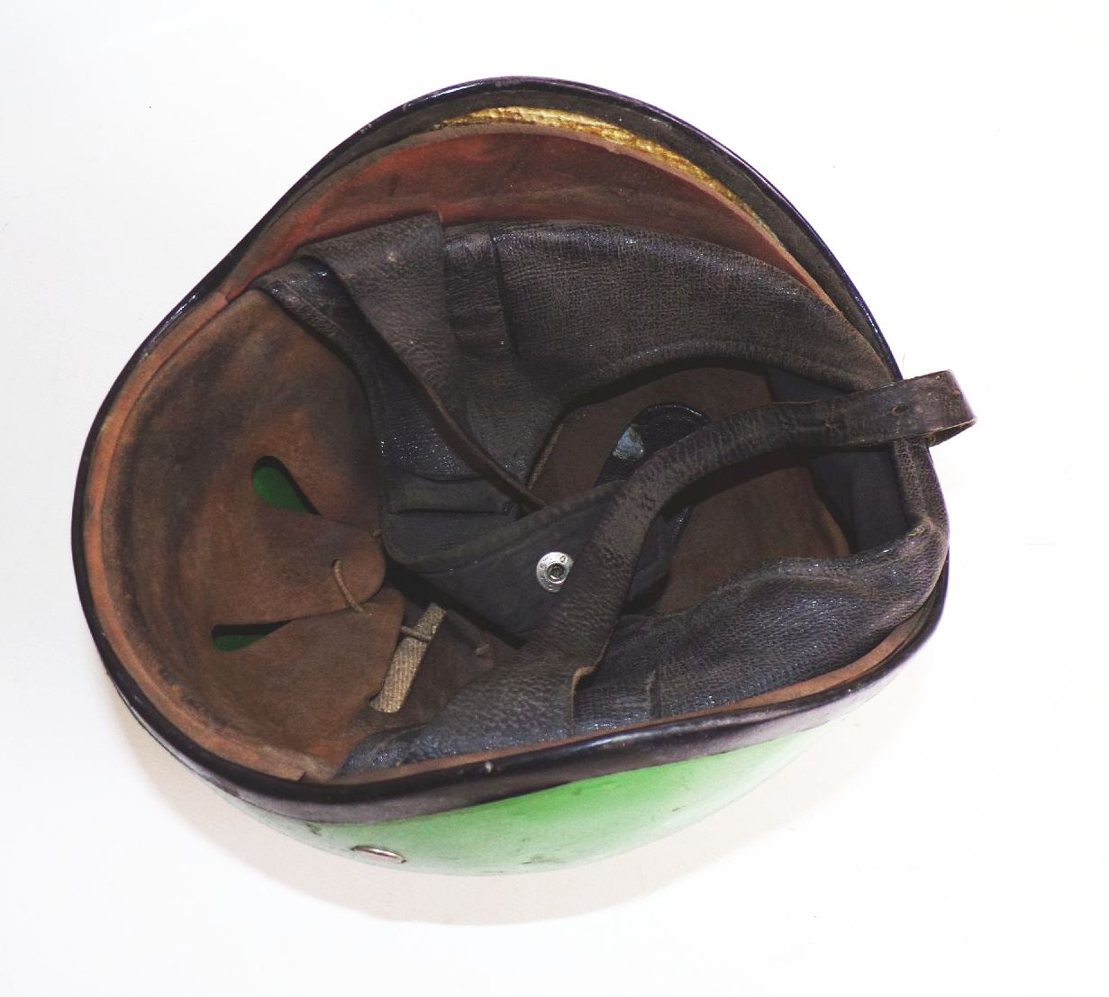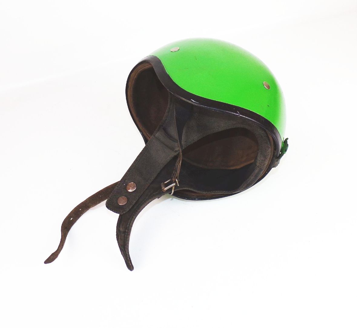 Originaler, alter Mopedhelm in grün, aus DDR - Zeiten. Größe 56. Ungereinigter Fundzustand. Das Grün ist nicht die Originalfarbe. Erhaltung: Trage - und Gebrauchsspuren sichtbar, alles weitere siehe bitte Fotos. Es wird keine Mehrwertsteuer ausgewiesen, da wir der Differenzbesteuerung nach § 25a UStG unterliegen.