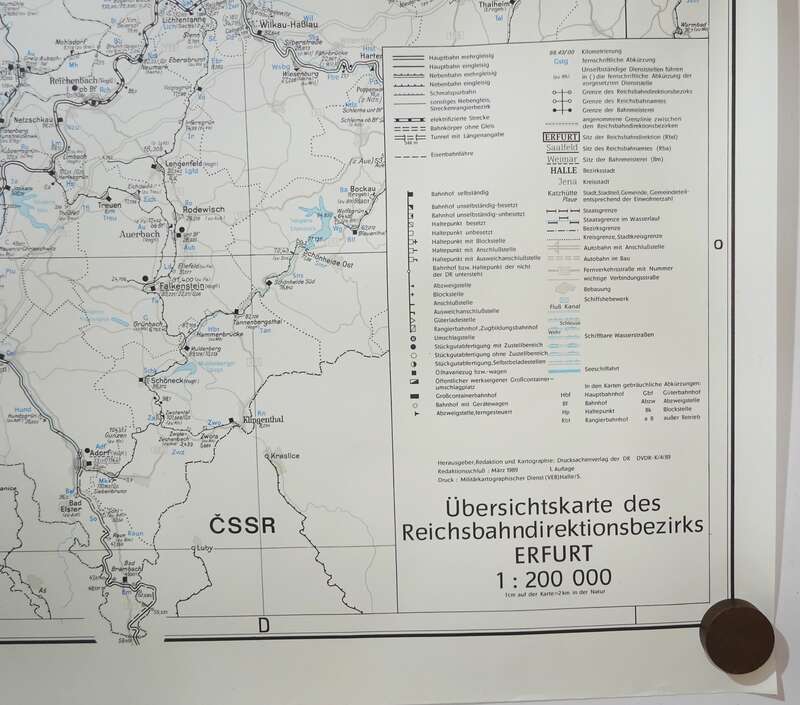 DDR Karte Reichsbahndirektionssbezirk Erfurt 1989 Eisenbahn 1 Auflage