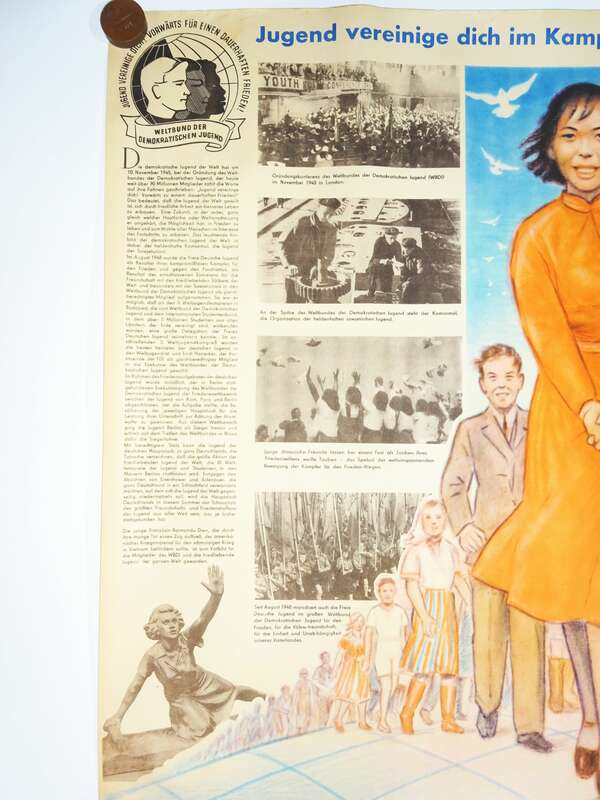 DDR Plakat Jugend vereinigt euch gegen Krieg Vintage Poster Sammler 1950er