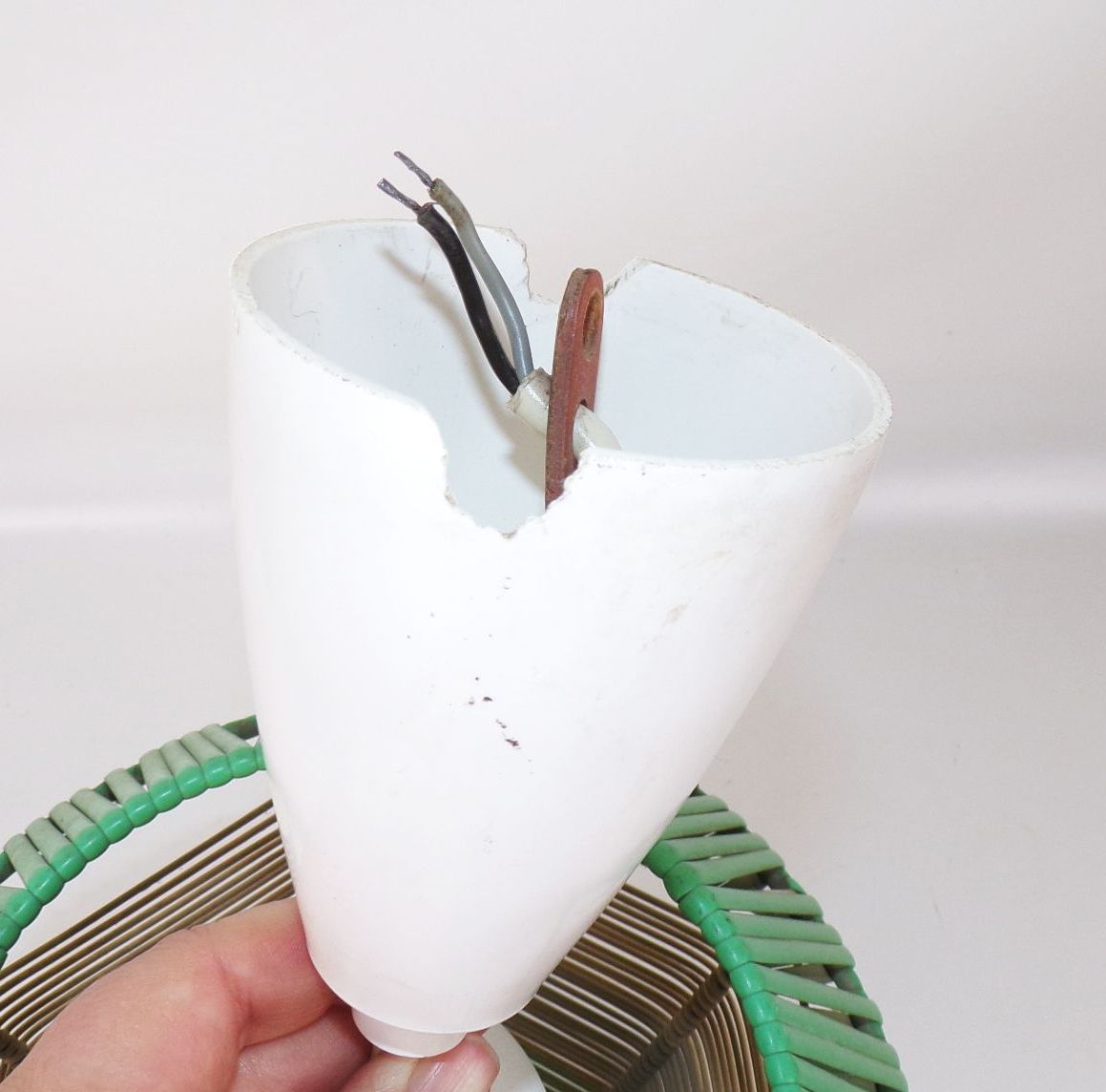 Deckenleuchte DDR 1950er 1960er Jahre PVC Grün Beige E27 Mid Century
