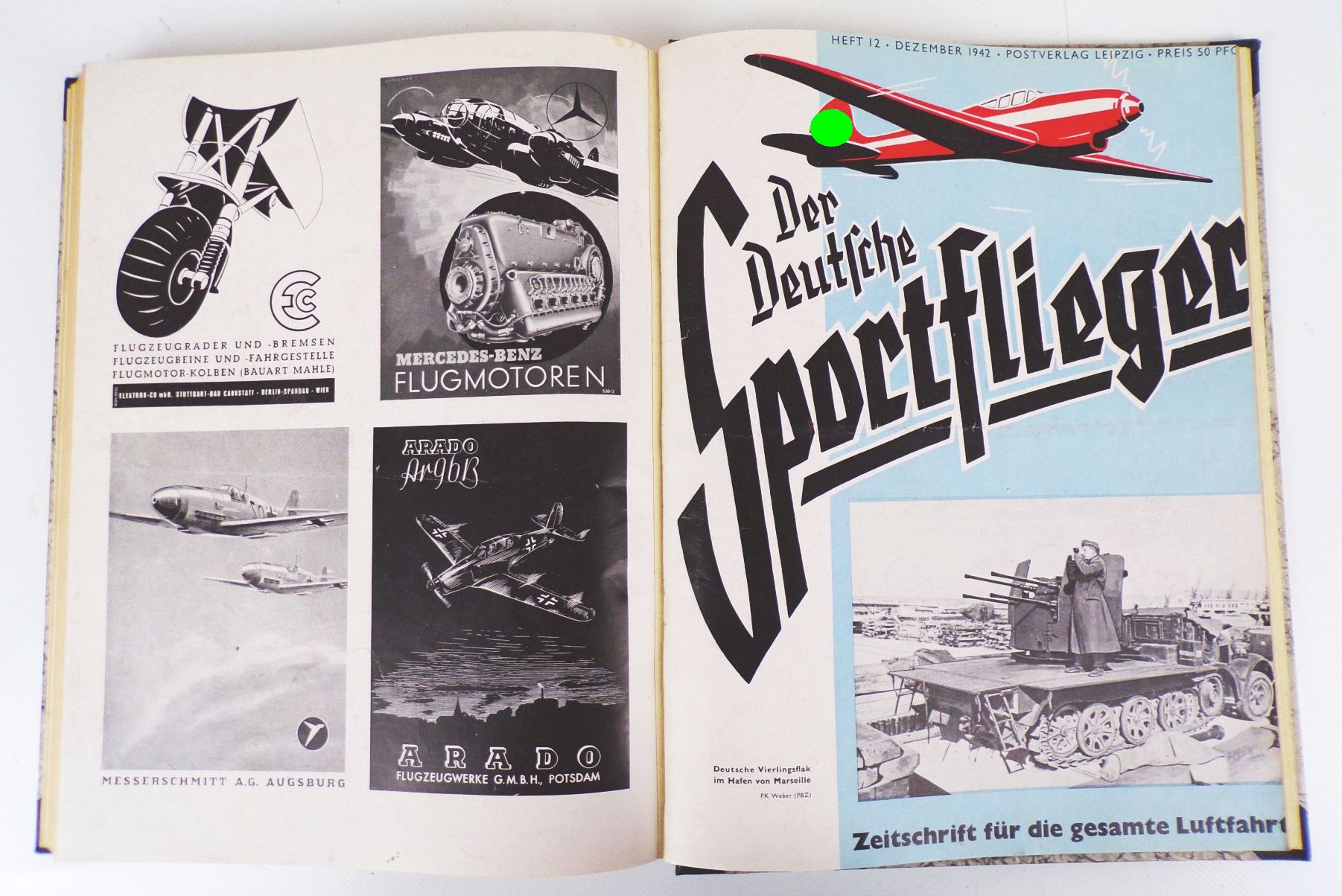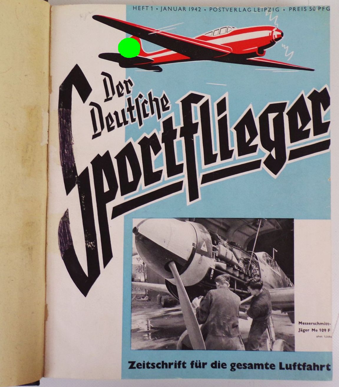 Originales Buch / gebundene Zeitung, Der deutsche Sportflieger Zeitschrift für die gesamte Luftfahrt Jahrgang 1942. Zahlreich illustriert. Druck und Verlag Edgar Herfurth & Co. Leipzig. Format: 23,5 cm x 31,5 cm. Erhaltung: leichte Gebrauchsspuren vorhanden, erstes Titelblatt laienhaft restauriert ( Buchstaben nachgemalt ), ansonsten im guten, gebrauchten Zustand, alles weitere siehe bitte Fotos.