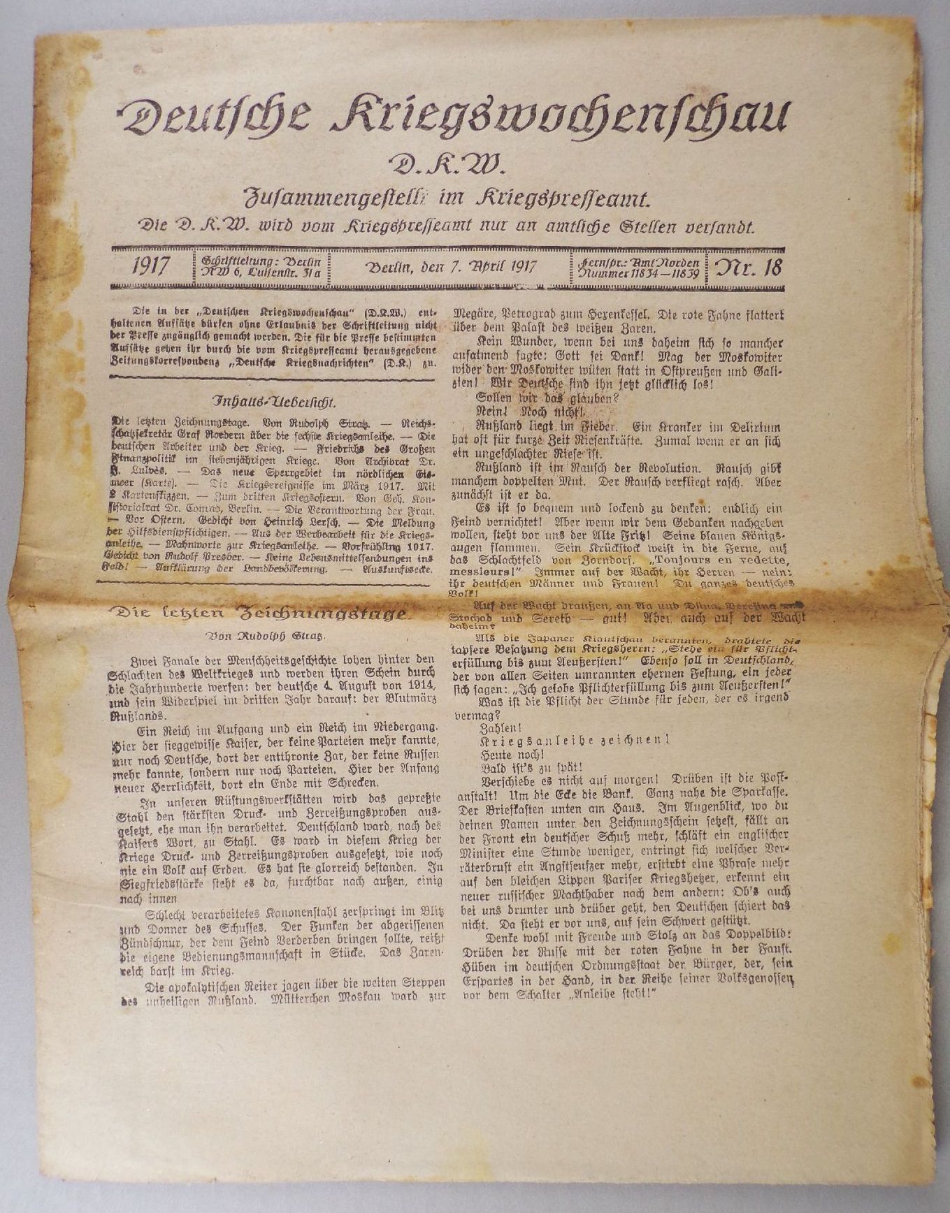 Deutsche Kriegswochenschau Nr 18 April 1917 Zeitung
