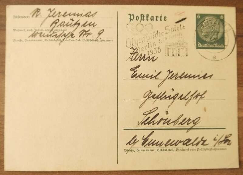 Deutsches Reich Postkarte Brief Olympische Spiele 1936
