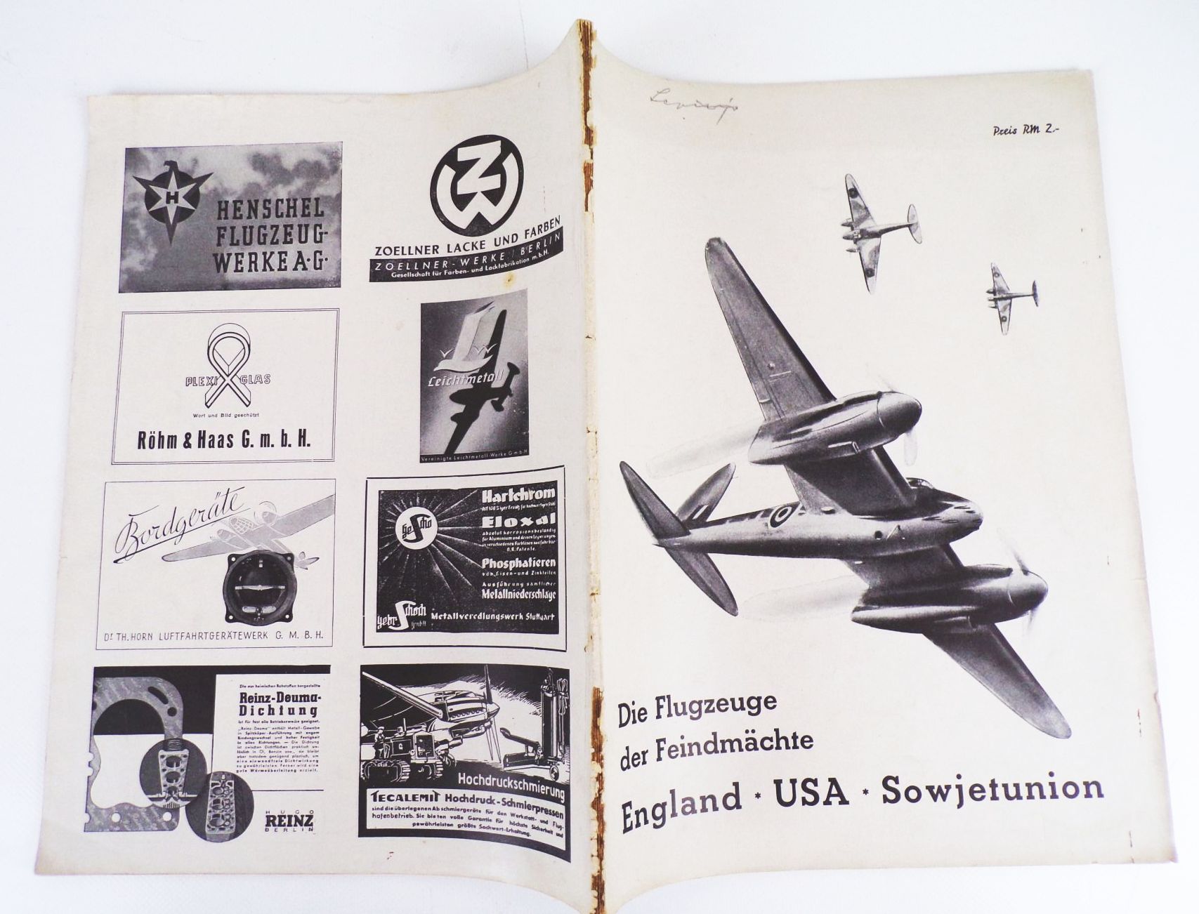 Originale Zeitung, Der Flieger Deutschlands älteste Luftfahrt - Monatsschrift, Die Flugzeuge der Feindmächte England USA Sowjetunion . Zahlreich illustriert. Format: 23,5 cm x 31,5 cm. Erhaltung: Einband bestoßen, Heftrücken stark beschabt, ansonsten gut, alles weitere siehe bitte Fotos.