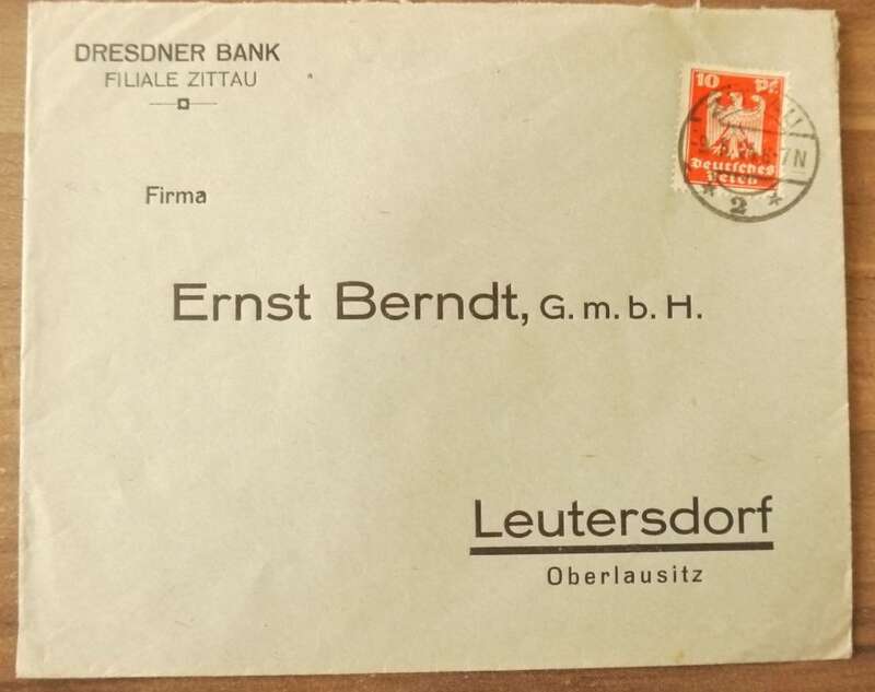 Dresdner Bank Firmenbrief 1924 DR Brief an Ernst Berndt GmbH Leutersdorf