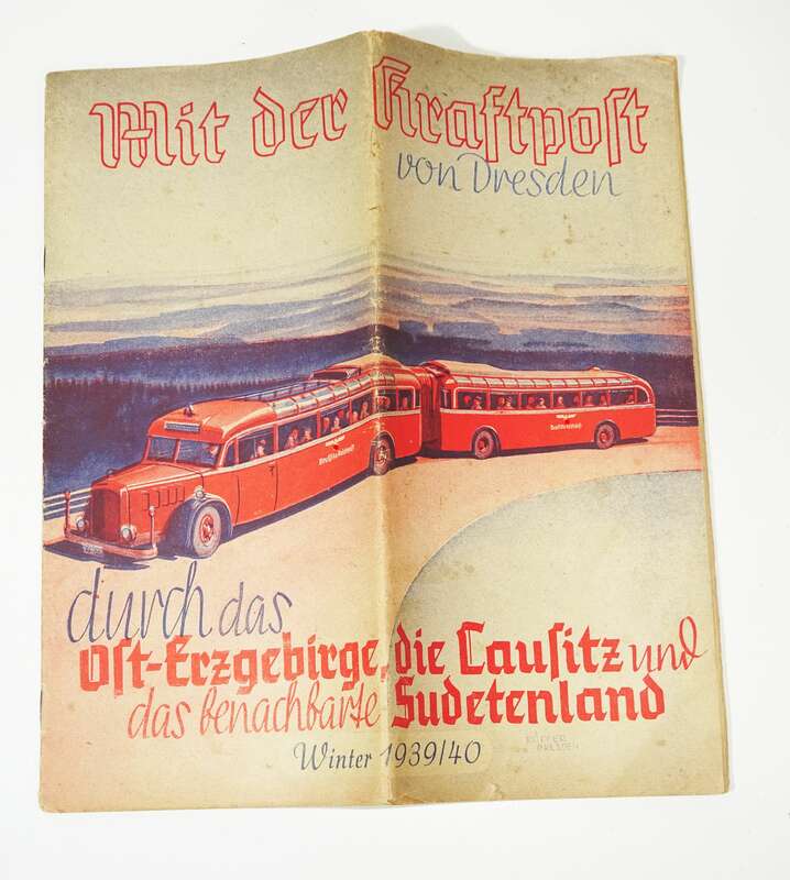Fahrplan Mit der Kraftpost von Dresden Ost Erzgebirge Lausitz Sudetenland 1940 Omnibus