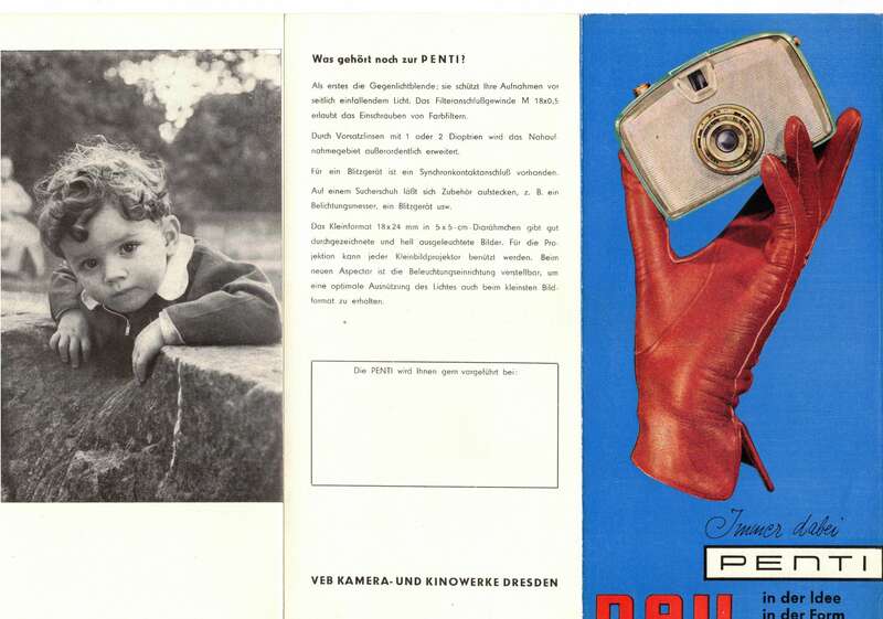 Faltblatt Penti Kamera VEB Kamera und Kinowerke Dresden 1959