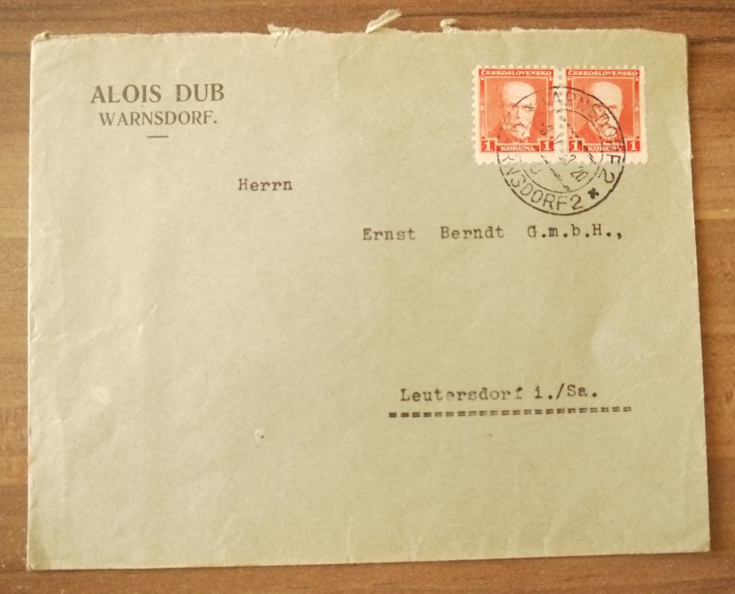 Firmenbrief Alois Dub 1933 Brief Warnsdorf Böhmen