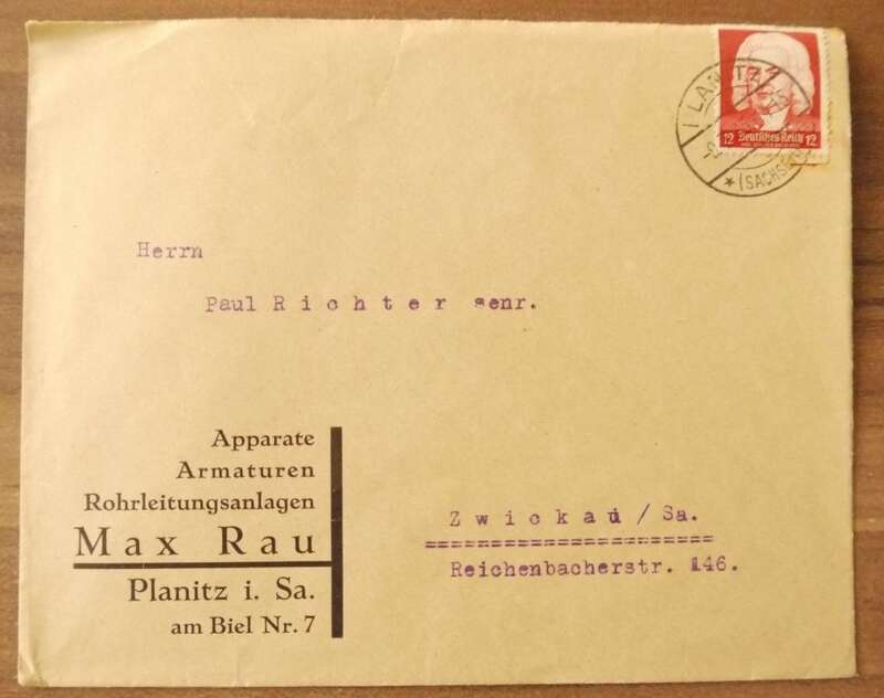Firmenbrief Apparate Armaturen Rohrleitungsanlagen Max Rau Planitz Sachsen DR 1935