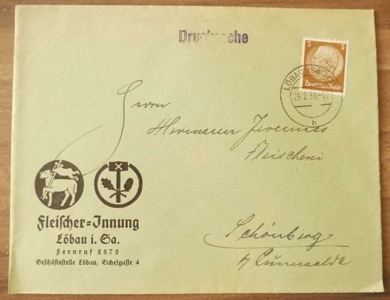 Firmenbrief Herrman Jeremias Fleischerei DR Sachsen Schönberg Cunewalde Fleischer Innung 1939