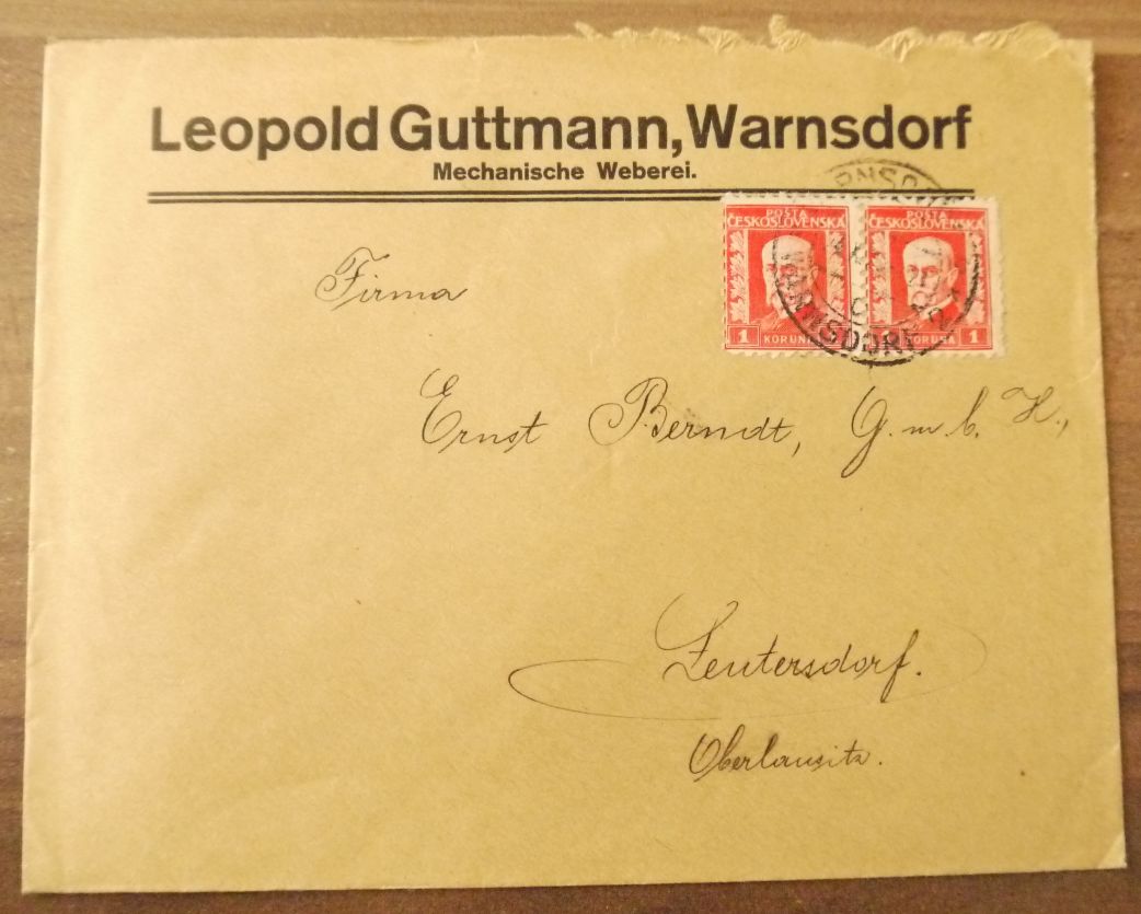 Firmenbrief Leopold Guttmann Warnsdorf Böhmen Mechanische Weberei