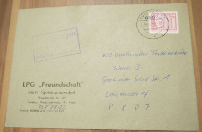 Firmenbrief LPG Freundschaft Spitzkunnersdorf DDR 1987