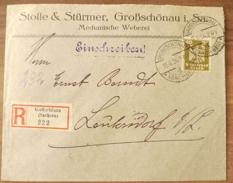 Firmenbrief Stolle und Stürmer Mechanische Weberei Großschönau Sachsen DR 1926